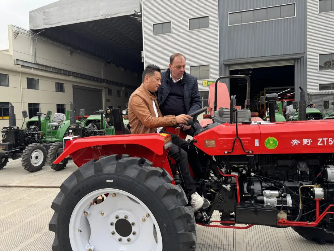 在拖拉机展示区,代表团成员兴致勃勃的上机驾驶了一圈,详细询问了动力配置、燃油经济性、操作舒适性与售后保障体系。代表团成员表示,塞尔维亚耕地面积广阔、规模化种植程度高,对耐用、高效、易维护的拖拉机需求稳定,奔野重工拖拉机动力强劲、结构可靠,十分契合当地农业生产条件。