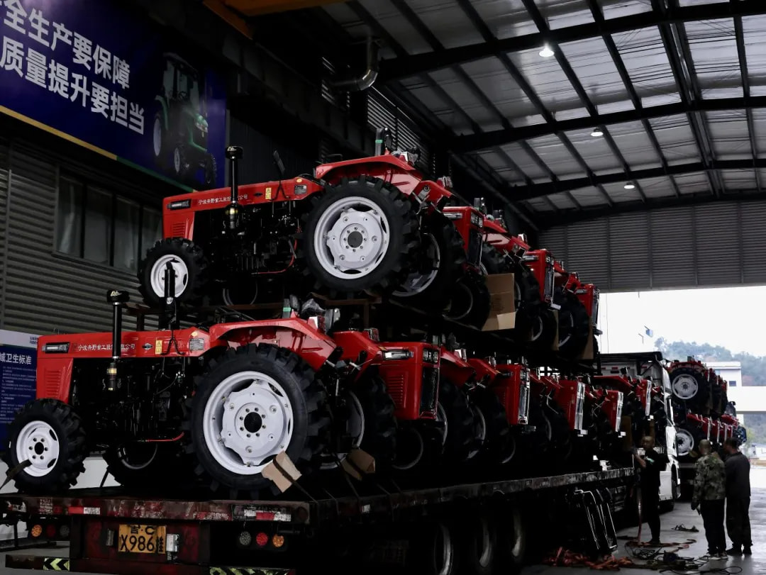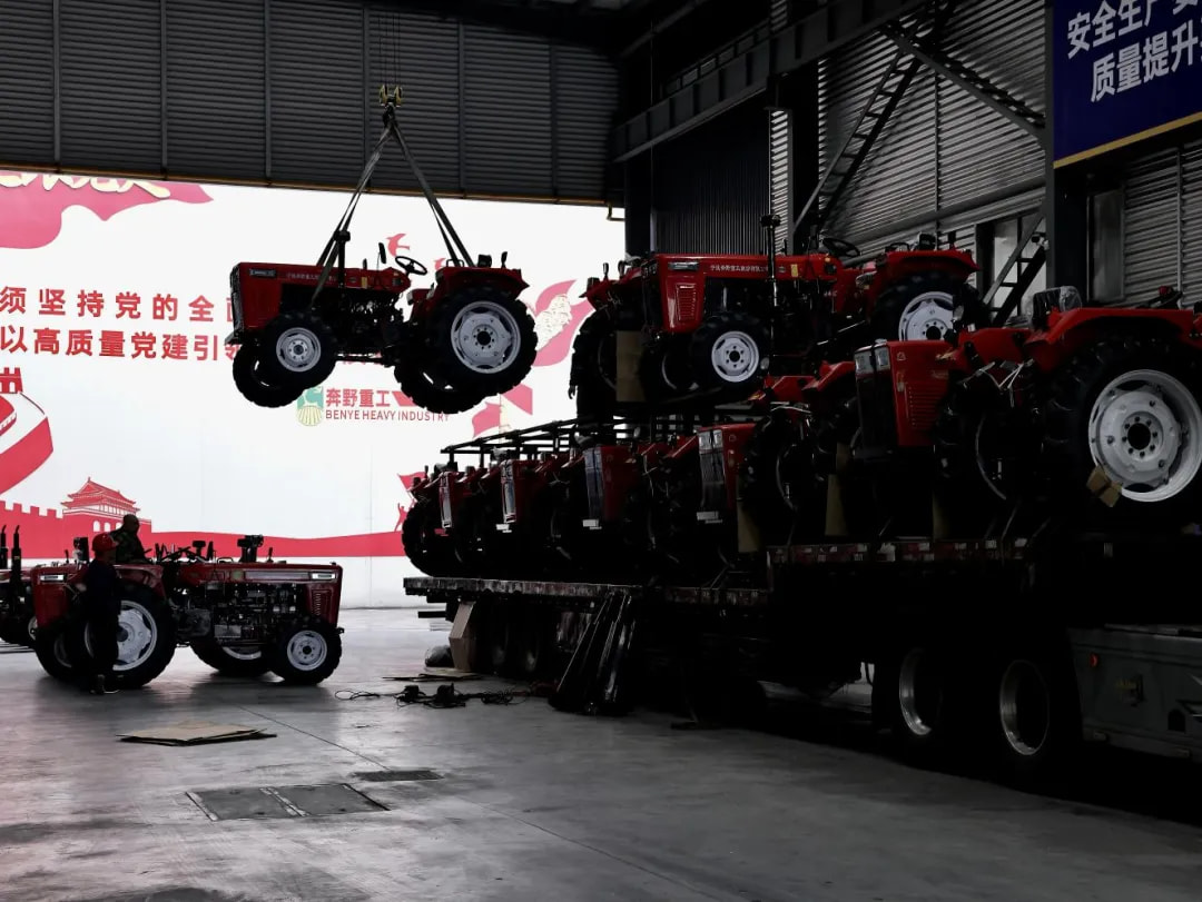 车间外的成品区,一台台崭新的奔野农机整齐排列,等待装车发运。装车师傅同样忙碌不停,协调车辆、核对订单、安排配送,确保每一批农机都能及时、安全送达客户手中。“我们每天都有几十台农机发往各地,就是为了让农机尽快抵达田间,不误农时、助力丰收。” 物流部负责人介绍道。